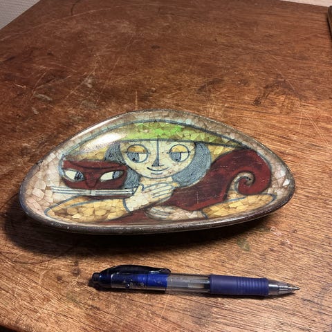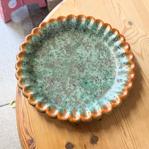 Fint hvidt keramik fad. Tror der har været en lille rep. ved øret.