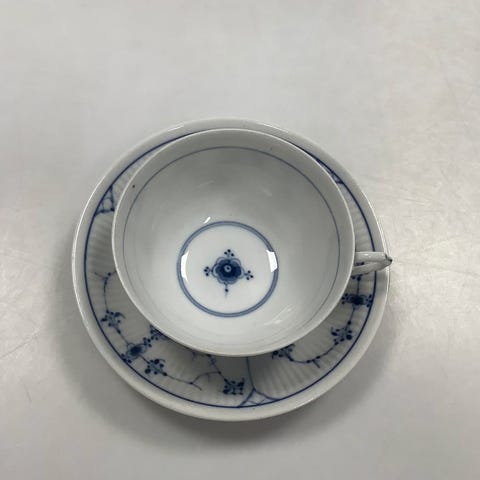 Bing og Grøndahl Blåmalet Riflet Stor Morgen Kop og underkop VI SENDER