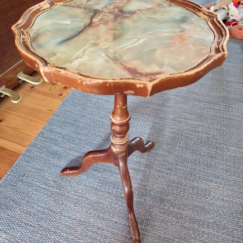 natbord eller sidebord. antikt, portugisisk bord med en skuffe, måske kastanjetræ?
