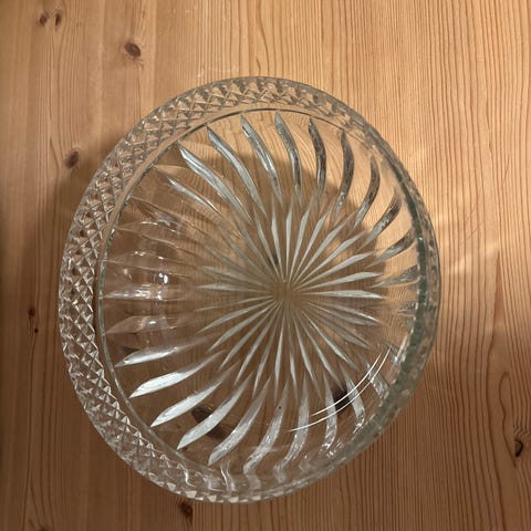 Krystal skåle, smukke, 19cm og 2 x 17 cm i diameter. Højde 6,5cm til 9 cm