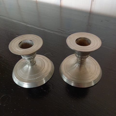 To smukke, håndlavede lysestager i perletinn med en tinprocent på hele 93%. Lysestagerne er robuste og har en klassisk, tidløs æstetik, der passer perfekt til både moderne og vintage boligindretning. Ideelle til at skabe hyggelig stemning med levende lys.