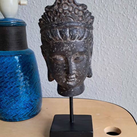 Jeg ved desværre ikke hvad den er lavet af, men den er tung. Vil helst have den hentet, men kan godt sendes.