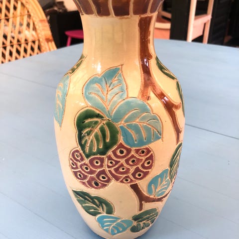 Gl romantisk vase, Vintage, Gl porcelænsvase m roser