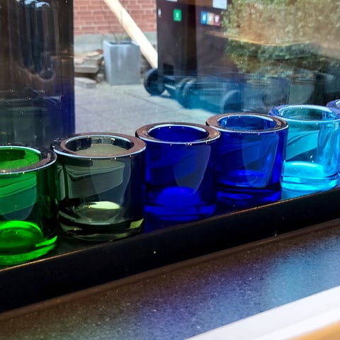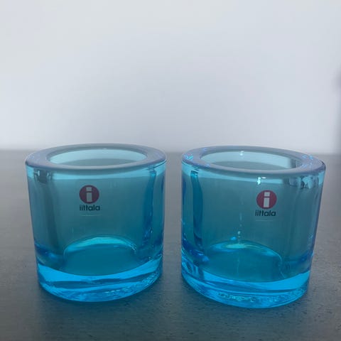 Har 2 i røg farvet glas også med Marimekko i bunden