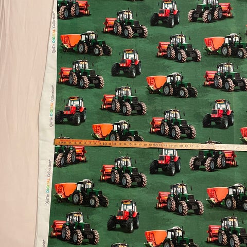 Stof, Stof med biler, Stofrest på 131 x 47 cm. Grønt med flotte biler i forskellige farver. Fra dyr-og røgfrit hjem. Sender gerne. Jeg sælger også petroleumsfarvet jersey stof med hvide stjerner. Fra dyr-og røgfrit hjem. Sender gerne.