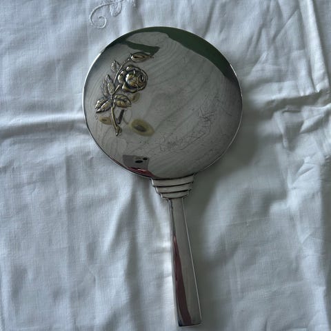 Gammelt håndspejl-klæde børste, to tårn, rosemønster