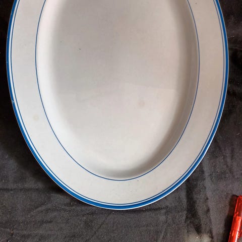 Stort fad og skål fra Villeroy & Boch i fajance stellet "Fasan" med blå glasur.