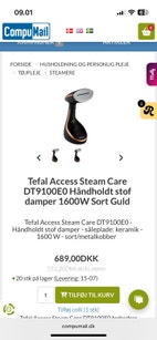 Har fortrudt mit køb. Damperen har ikke været pakket ud. Sælges m stor rabat for 450kr
