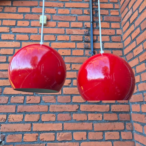 Kuglelamper, Ukendt designer, minder om Verner Panton. Orange med hvid stofledning. Ø 17 cm. Super stand. Sælges samlet.