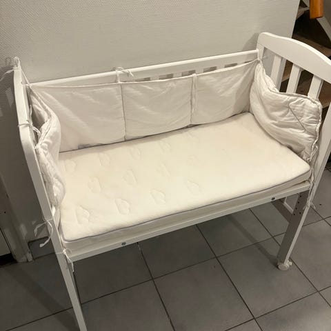 Brugt 3-i-1 løsning som kan bruges som tremmeseng, sideseng og kravlegård.