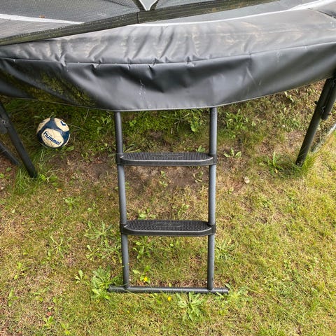 Black Edition 420cm Salta Trampolin sælges. Velholdt med brugsspor, Der medfølger en stige og bånd til robot plæneklipper på benene. Jeg skal nok gøre den ren :-)