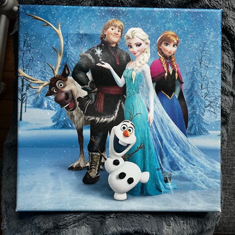 Trykt på canvas med illustration fra Frozen, professionelt monteret på blindramme af træ. Et billede der vil pynte på fx ethvert ungpigeværelse.