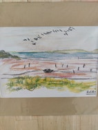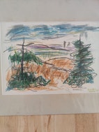Orginal kunst i passepartout lige til at sætte i ramme. 40 x 30 cm. En mulighed for orginal kunst til små penge,k da de