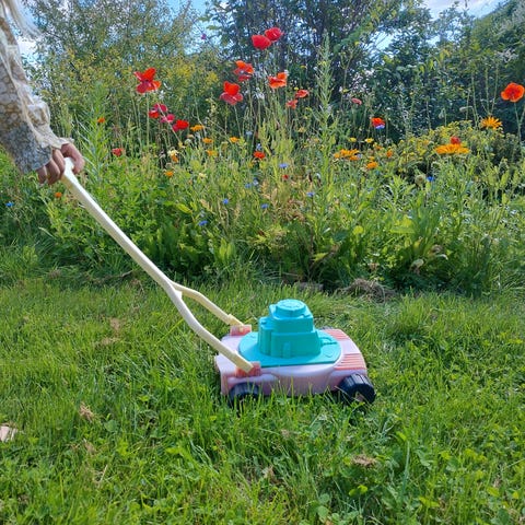 Græsslåmaskine til børn. Siger lyd når man kører med den. Uden batteri.