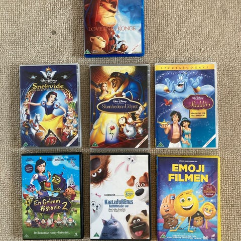 Emoji-dilmen, Big Hero 6, Alice i eventyrland, instruktør Disney, Pixar , DVD, animation, Alle film 30 kr. pr. STk, undtagen Alice i eventyrland, som koster 50 kr. Alle film i god stand.