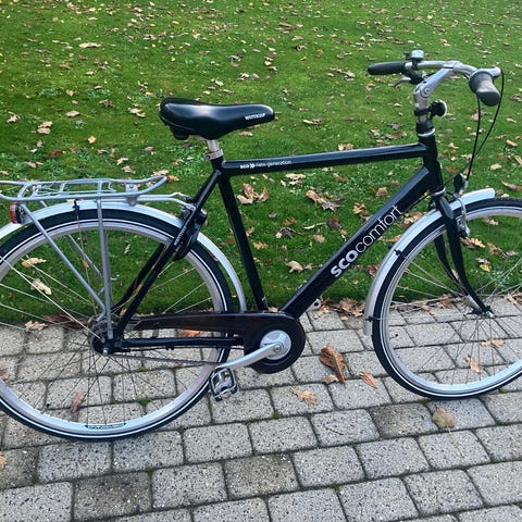 Sco Herrecykel som kommer med gear fra shimano og har et flot sort stel med blå detaljer - Nyserviceret hos Cykelsmed