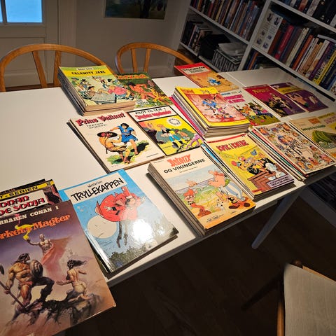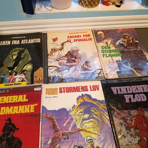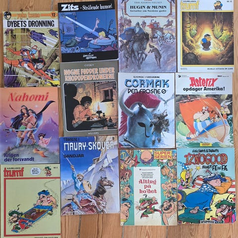 Blandt andet Tintin, Asterix, Lucky Luke, Lefranc, Asterix, Clifton, Yoko Tsuno, Blake og Mortimer, Smølferne, Benny Bomstærk, Henrik og Hagbart, Blåfrakkerne, Franka, Natascha, Rubine, Vakse Viggo....