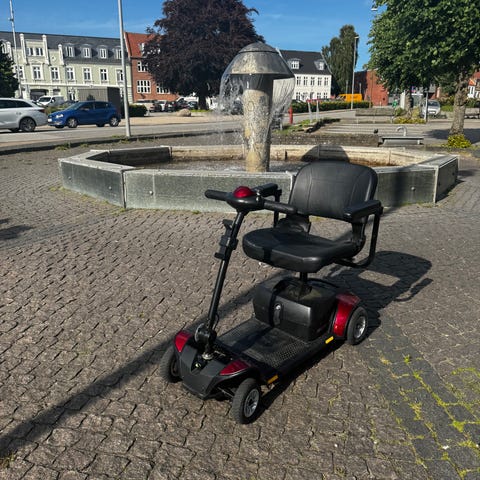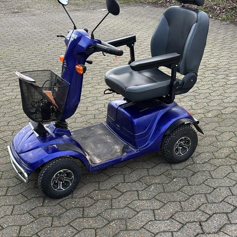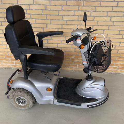 Denne handicap scooter kører omkring 20 km/t og har en lang, lang rækkevidde, derudover er den selfølgelig komfortabel, og behagelig at accelerere med. Desværre er den defekt, men jeg ved hvad der er galt med den.. Den mangler to 12v batterier og nye ledninger fra batteri til motor. Men da jeg ikke har forstand til at fixe den slags og den koster 9.000 for ny, tænker man kunne få en god deal med til projekt i det også.