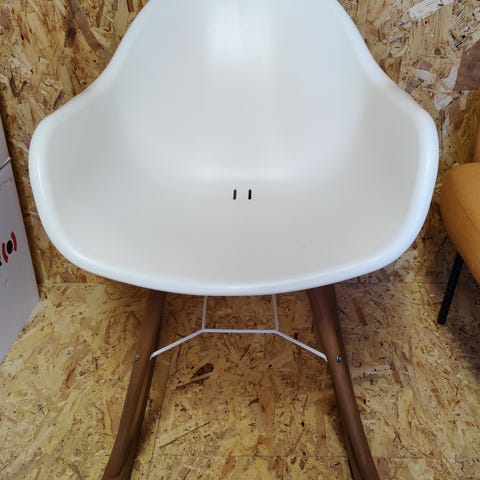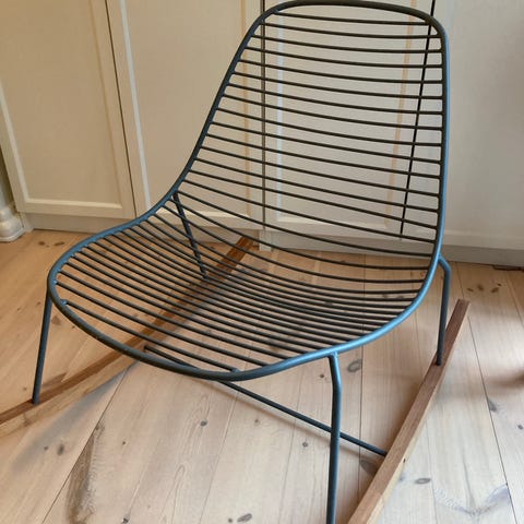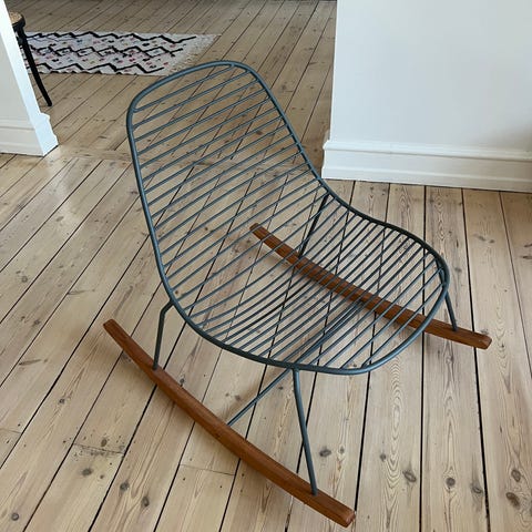 “Lounge-gyngestol” i pulverlakeret metal med meder af træ.