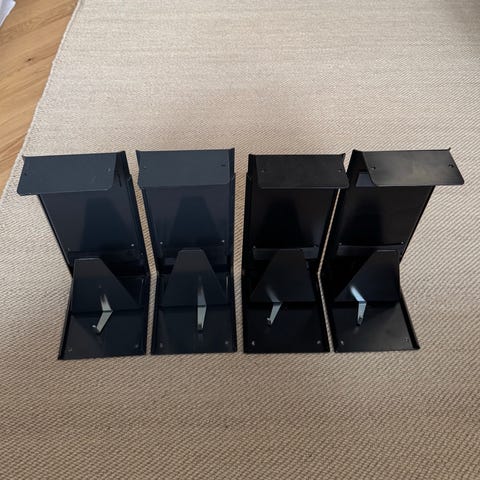 Produktbeskrivelse: Det produkt, du har billeder af, er en Twinco 1202 TWIN LINE CPU Holder. Det er en CPU-holder designet til at monteres under en bordplade (minimum 20 mm tyk), ofte ideel til hæve-/sænkeborde. Holderen er justerbar i både højde og bredde for at passe til forskellige computerstørrelser og kan bære op til 30 kg. Den er udstyret med beskyttende skumpuder for at forhindre ridser på computerkabinettet under montering og brug. Produktet hjælper med at skabe et mere organiseret og rengøringsvenligt arbejdsområde ved at frigøre gulvplads og reducere kabelrod.