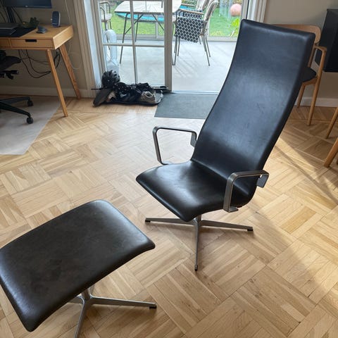 Arne Jacobsen Oxford lænestol i originalt mørkebrunt læder.