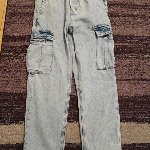 Er i str. 40. Er perfekte at bruge som oversized bukser.
