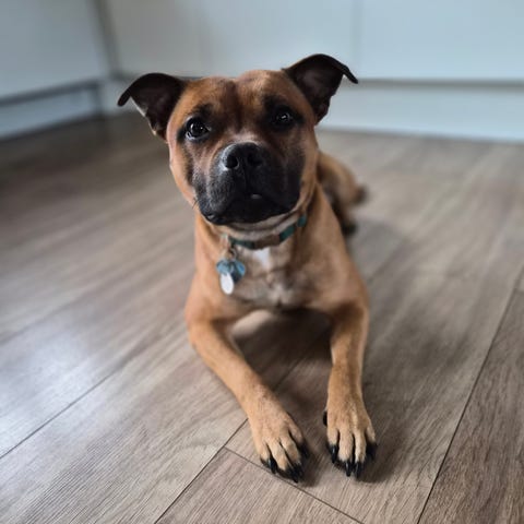 Mød Frio – vores fantastiske Staffordshire Bull Terrier, født den 4. januar 2024. Han er en sund, stærk og kærlig familiehund, der elsker mennesker og andre hunde.🐶🦴