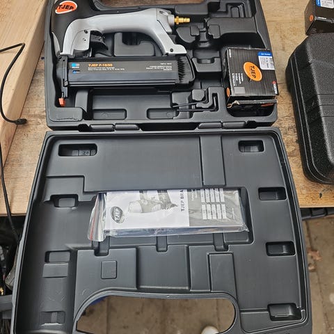 Dykkerpistol / hæftepistol, trykluft drevet, i plastkasse.