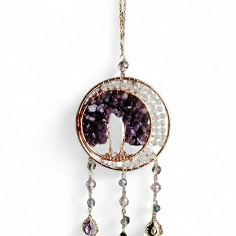 Flot pynte genstand, med livets træ formet af guldtråd på en 10 cm lang ametyst blok og med rød Jasper sten som blade.