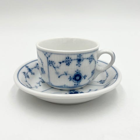 Royal Copenhagen - sjælden Flagermus kop med underkop 22/4503 fra frokoststel med bakke, tegnet af Arnold Krog i 1884-85.