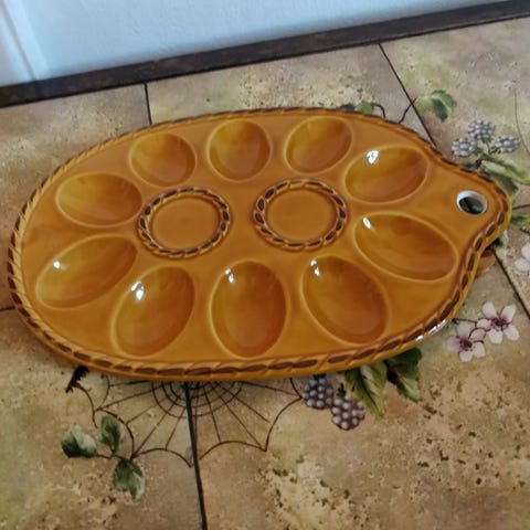Æggefad fra Calif USA i fajance og med plads til 15 hele eller halve æg.