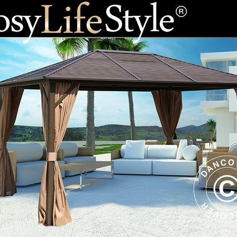 Pavillon San Francisco m/sidevægge og myggenet, 3,65x4,85m, Sort/Natur