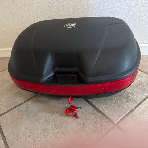 1 år gammel og brugt 2 gange. Plads til 2 hjelme.