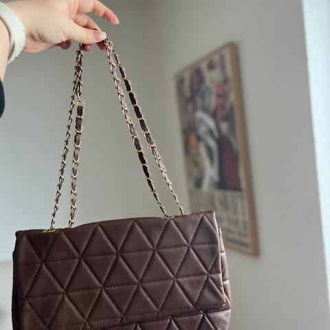 Cute lyserød skuldertaske med drejelås i imiteret pels fra JustFab. Har 1 inderlomme med lynlås.