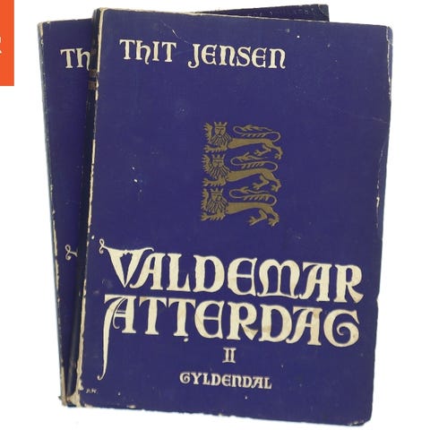 Drotten, Thit Jensen, genre: roman, Historisk roman om Valdemar Atterdag. I to bind, med dedikation fra Thit Jensen i det første.