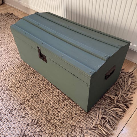 Super fin kiste med smuk messinglås. Mål: B80, H51 og D45. Pris 550kr.