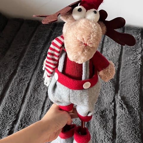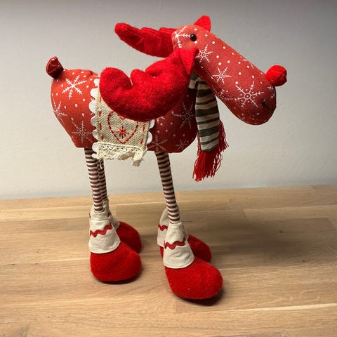 60cm Stor Elg, julepynt og dekoration, Stor jule-elg i polyester / kunst-skind, med masser af bjældeklang /klokker (ialt 12 bjælder derpå)