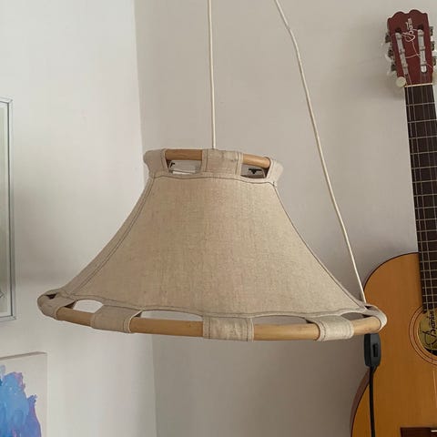 En sjælden mulighed for at erhverve en original Anna Ehrner-loftslampe i den eftertragtede lyserøde farve — perfekt til skandinavisk mid-century eller bohemeindretning.