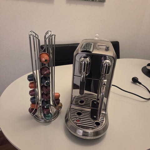 Sælger min Nespresso Creatista Pro (fra Sage) i rustfrit stål. Laver espresso, cappuccino, latte m.m. – med indbygget automatisk mælkeskummer. Touchskærm, hurtig opvarmning og café-kvalitet hjemme i køkkenet.