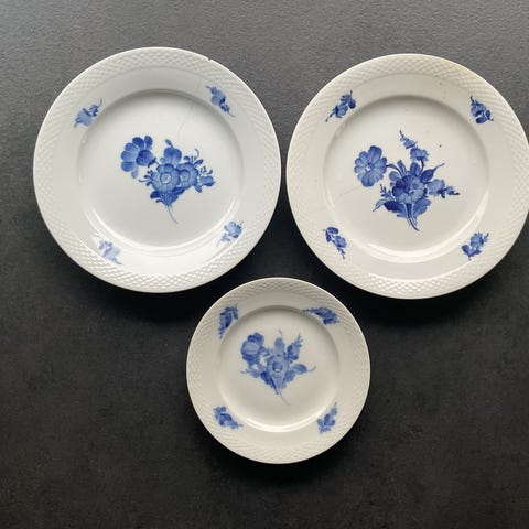 Gammel Royal Copenhagen blå blomst frokost sildetallerken