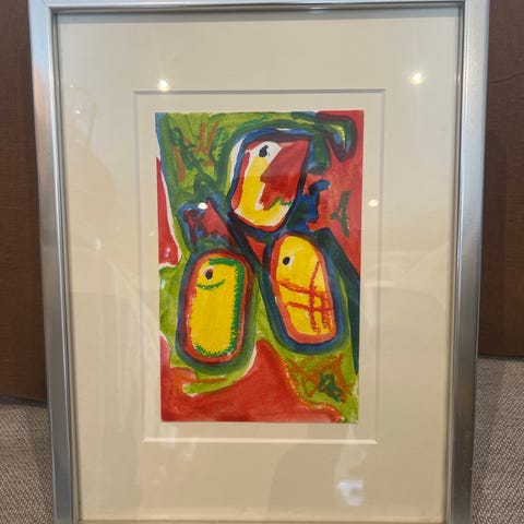 smukt maleri af finn pedersen inspireret af copra malerne 51-64 med ramme flot og velholdt