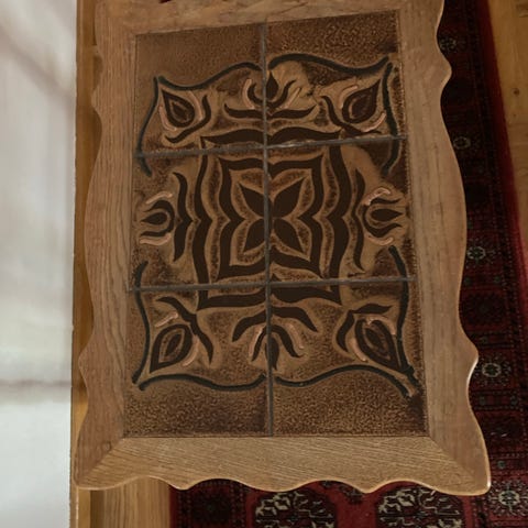 Fint, kvadratisk bord med kakler i rigtig flot stand. Jagt- eller naturmotiver. 46x46x57 cm. Måske et sofa- eller sidebord? Til planter. Til herreværelset med læderstolene og whiskyen til efteråret? Ja, du bestemmer heldigvis selv. Men her er der ikke plads til det mere, så nu skal der et nyt hjem til. Afhentes i Vejle for den nette sum af 199,-.