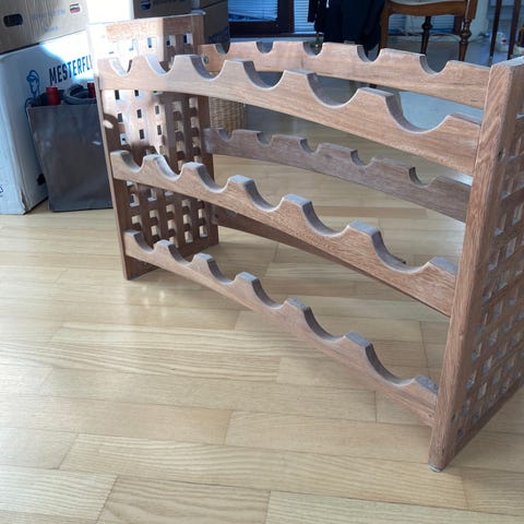 På foto nr. 8 - Her er plads til 9 saft- eller vinflasker, og hvis det ikke er nok, kan du stable en ekstra reol ovenpå – og placere endnu flere på begge sider af den.