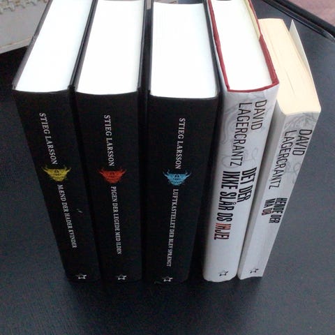 Trilogi, Stieg Larsson, spænding “mænd der hader kvinder”. Sælges samlet 125kr