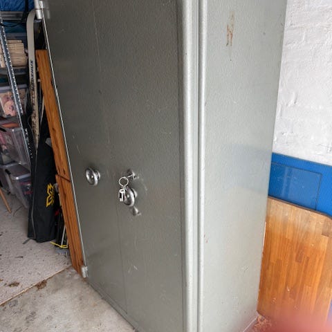 Skabet kan åbnes og lukkes men skal have skiftet låsen/ cylinderen.