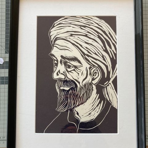 Orientalsk kvinde på aluminiums tryk. Højde: 45 cm. Bredde: 60 cm.