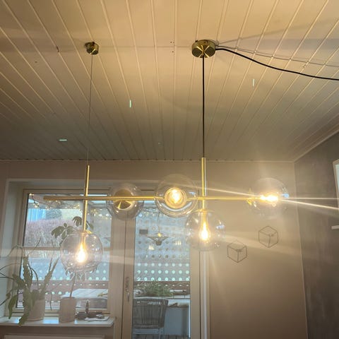 Vi sælger denne fine lampe idet vi ikke har loftehøjde nok til den.