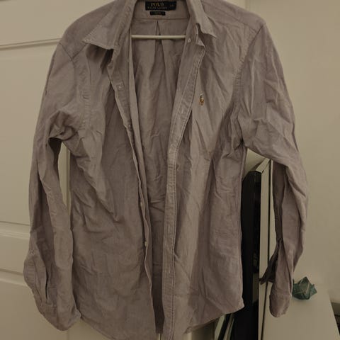 Polo Ralph Lauren skjorte til mænd i størrelse M. Skjorten er lilla og fremstillet af materialer af høj kvalitet. Perfekt til både formelle og afslappede lejligheder.