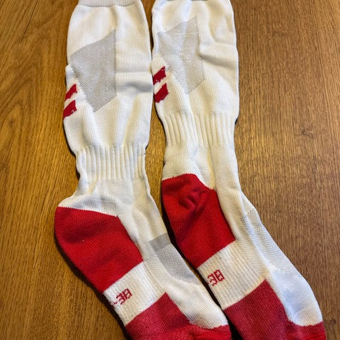 Adidas DBU shorts i hvid med røde detaljer. Størrelse S. Fremstillet af let og åndbart materiale, ideel til sport og fritid. Elastisk talje for komfortabel pasform.