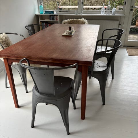 Udtræksbord med metalstel. Bøgefinerplader - uden ekstraplader er målet 1 x 2 meter - med ekstra plader ilagt 3 meter